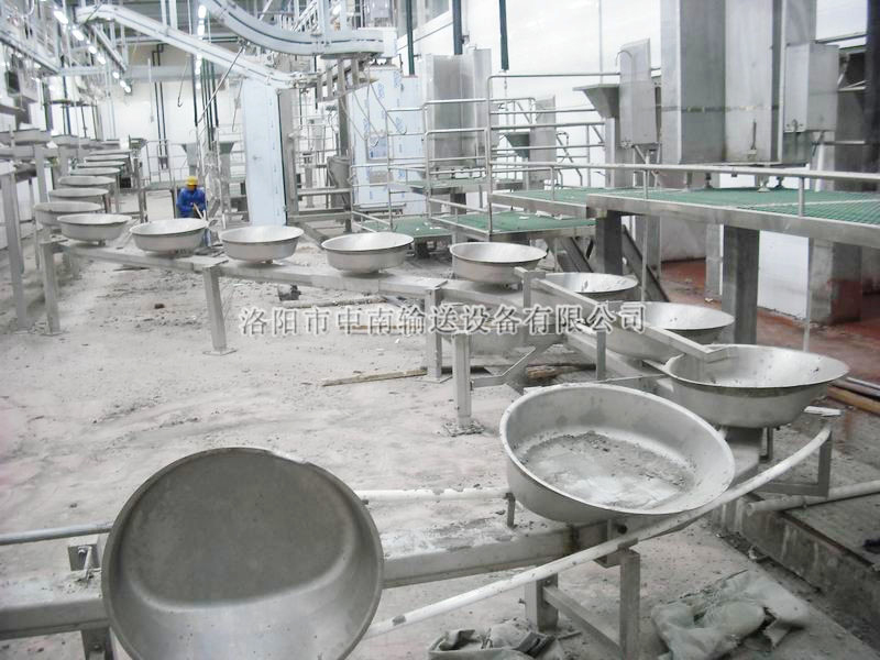 同步衛(wèi)檢線可分為:落地式和懸掛式。將屠體的頭、腸、胃、心、肝與胴體同步對(duì)好檢驗(yàn),紅臟與白臟懸掛在衛(wèi)檢線上,按設(shè)定的速度與胴體加工線同步運(yùn)行,由人工對(duì)內(nèi)臟進(jìn)行充分檢驗(yàn)檢疫,這樣既保證了肉質(zhì)的衛(wèi)生質(zhì)量,又符合國(guó)家有關(guān)衛(wèi)生檢測(cè)標(biāo)準(zhǔn)。該設(shè)備運(yùn)行平穩(wěn),同步準(zhǔn)確,是屠宰加工中不可缺少的裝置之一。